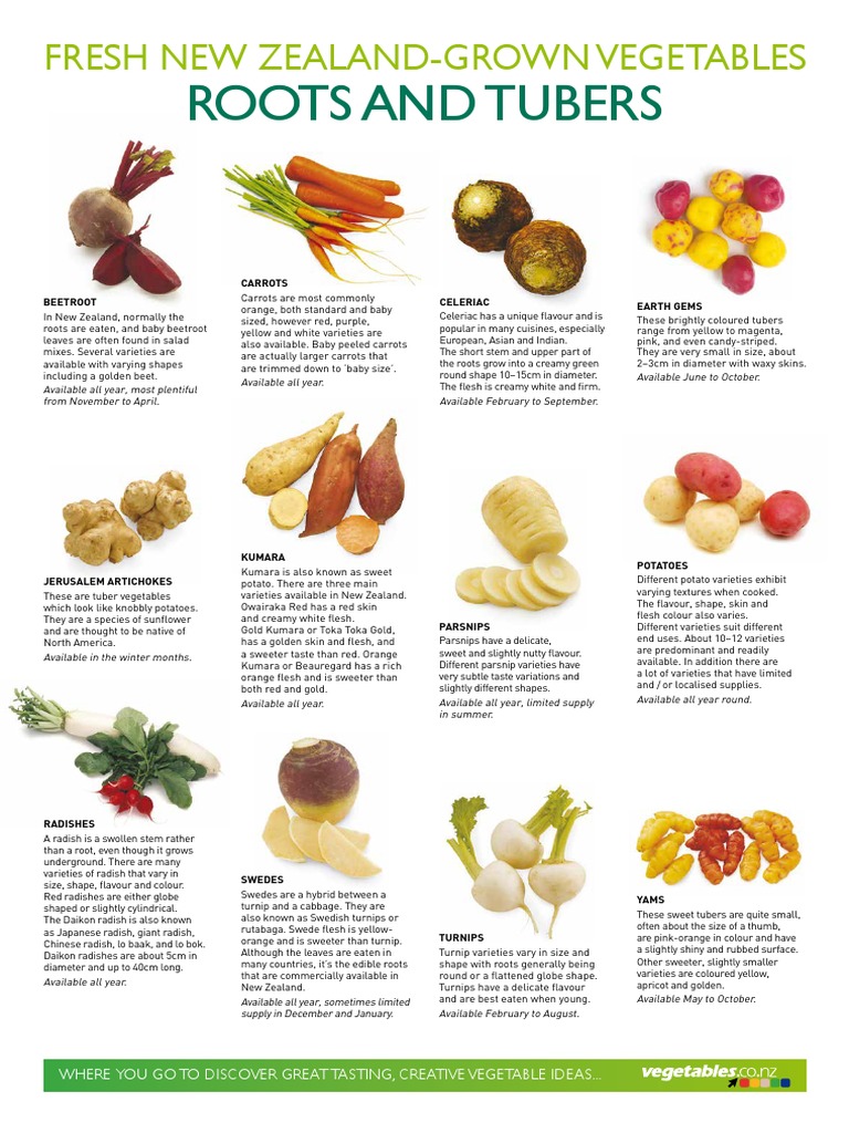 VEG0018 Roots and Tubers A3 Poster Sweet Potato Edible Plants Root Crops Vegetables List Root veggies come in different shapes, sizes, textures, and flavors and a great way to add more variety to your diet. From carrots to potatoes to onions, root vegetables have long been enjoyed as a delicious part of a healthy diet — and for good reason. They are a rich source of carbohydrate and are consumed as staple foods all. Root Crops Vegetables List.