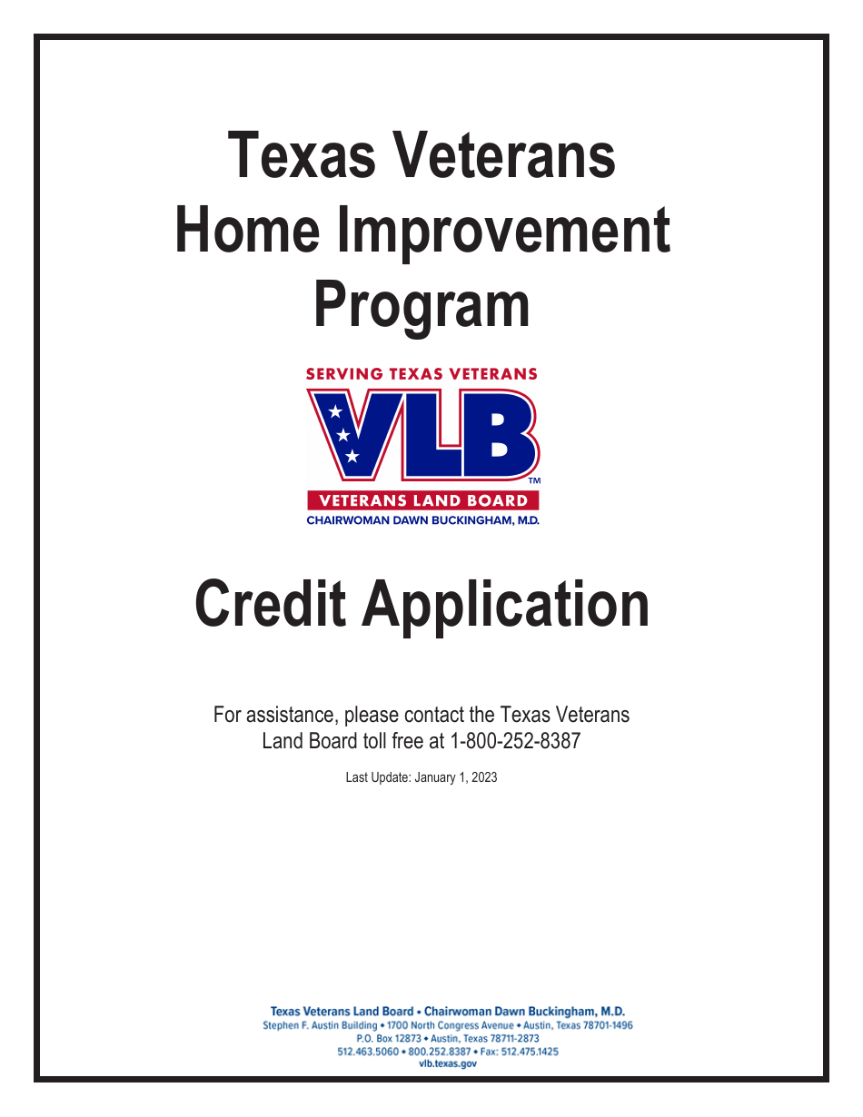 Texas Credit Application Texas Veterans Home Improvement Program