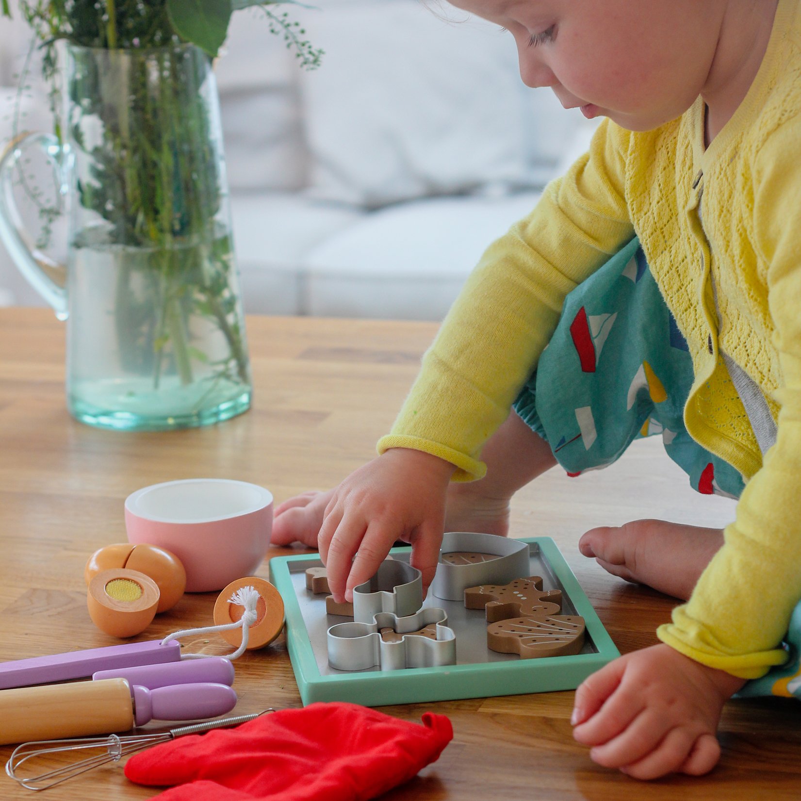 Wooden Cookie Play Food Set; Cookie Baking Set with Wooden Play Food