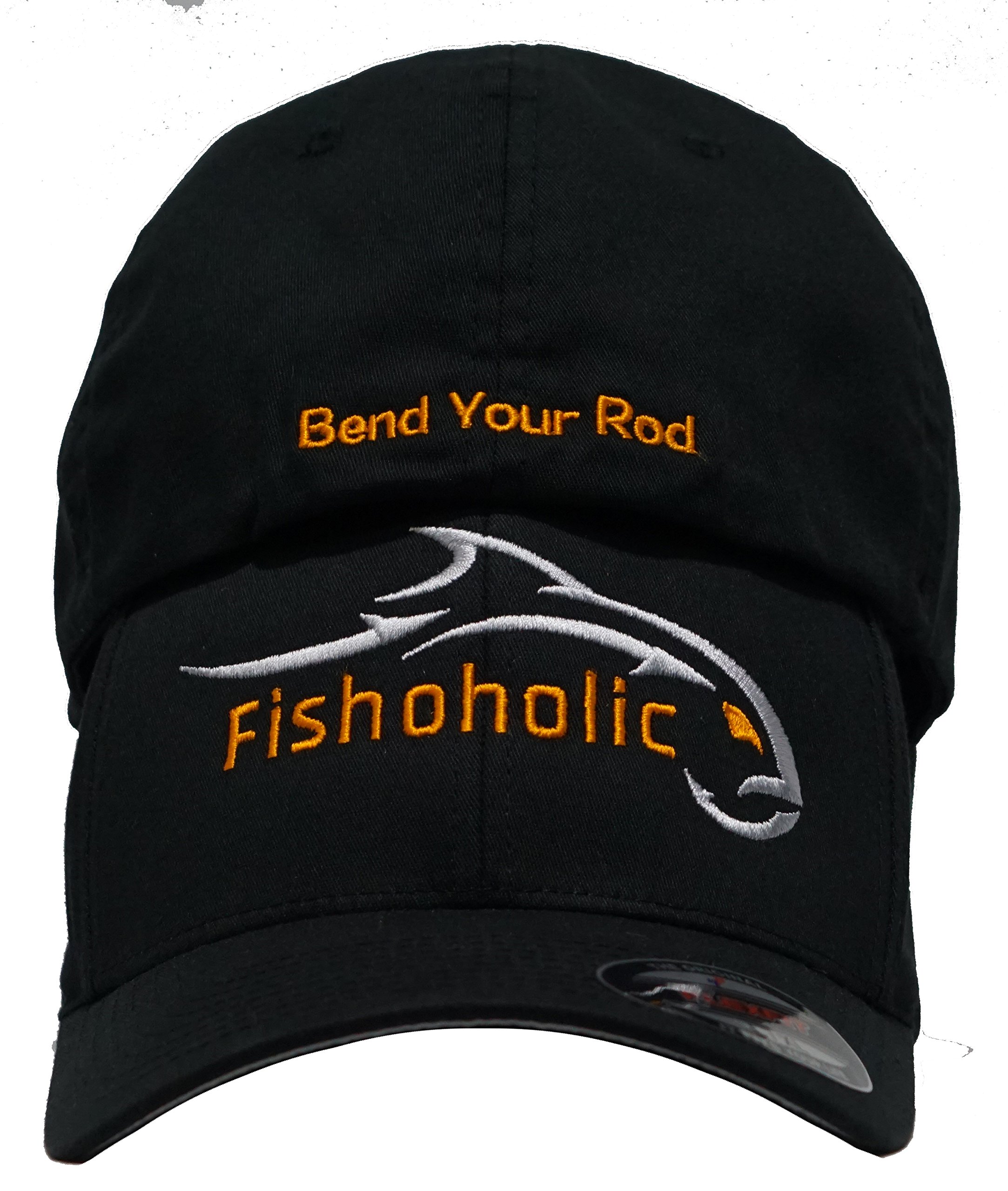 Fishoholic Flexfit Baseball Fishing Hat. Embroidered Logos. SemiFitted