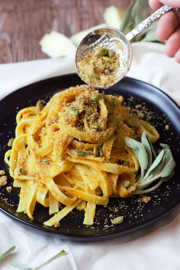 Pumpkin Pasta with Toasted Breadcrumb Topping Delicious by Design