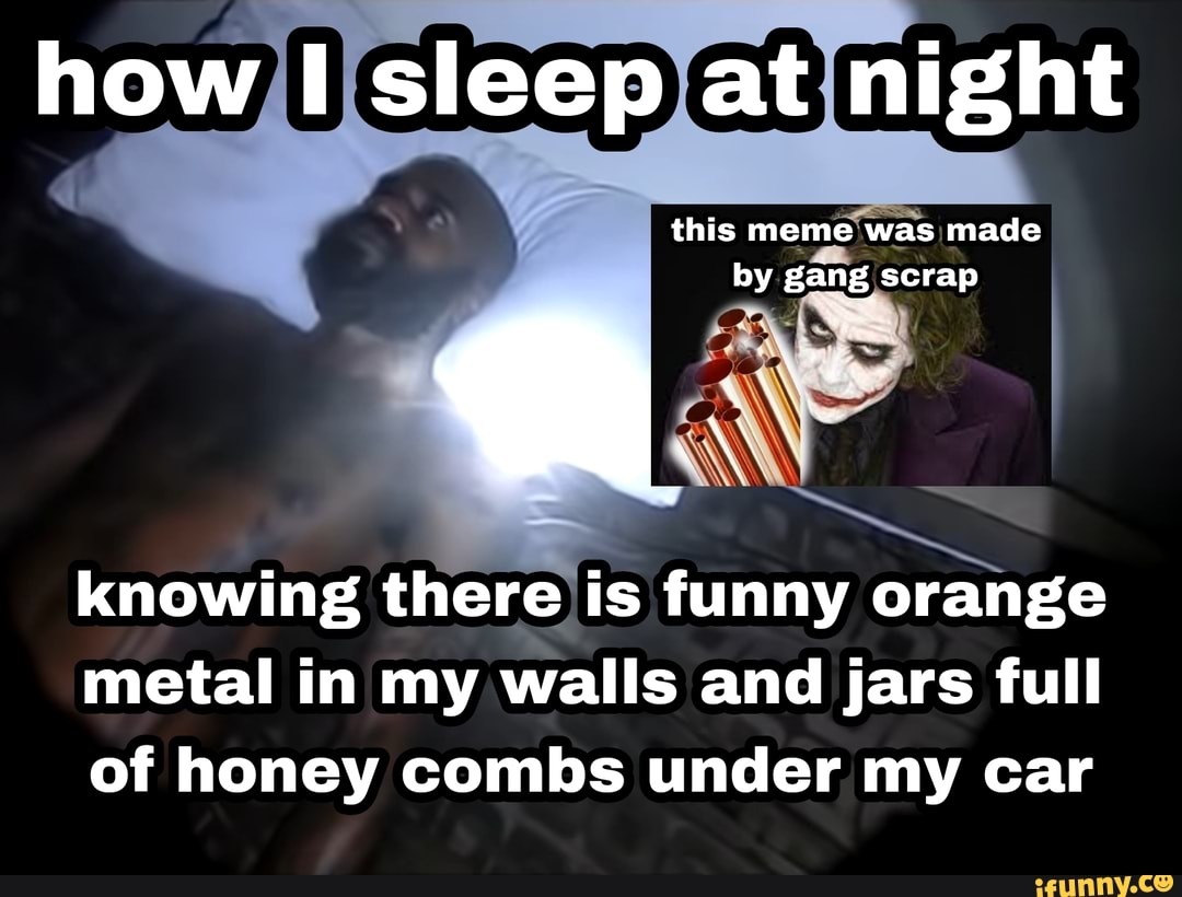 How I sleep at night this meme was made by gang scrap knowing there is