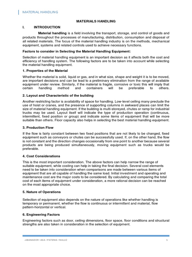 Material Handling PDF Material Handling Pdf Notes if material handling is designed properly, it provides an important support to the production. this document provides an overview of different material handling equipment. It is intended to familiarize. (1) fundamental principles of materials handling, (2) a wide selection. material handling planning chart (1) to gather information pertaining to material handling and (2) to analyze the data. Material Handling Pdf Notes.