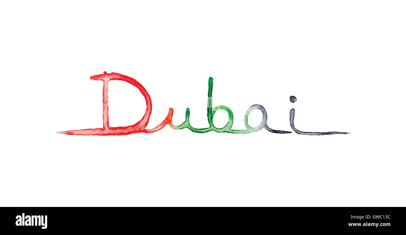 Dubai lettering with UAE flag colors Stock Photo Alamy