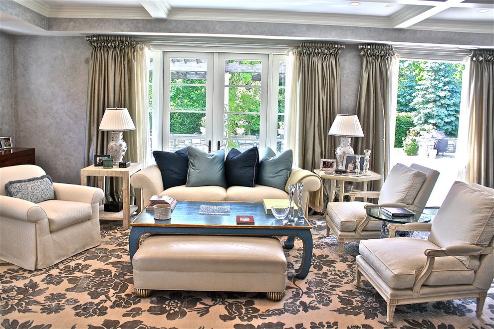 Art Deco / Contemporary Blue and White Living Room Contemporary Living Room Boston Houzz