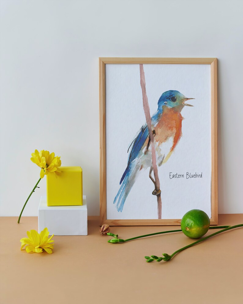 Eastern Bluebird Watercolor Print, Bluebird Wall Art, Eastern Bluebird