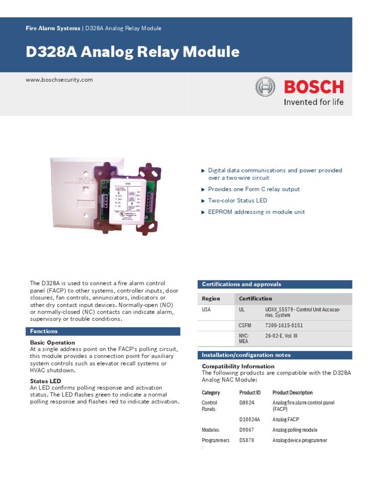 Fire Alarm Systems D328A Analog Relay Module Download Free PDF