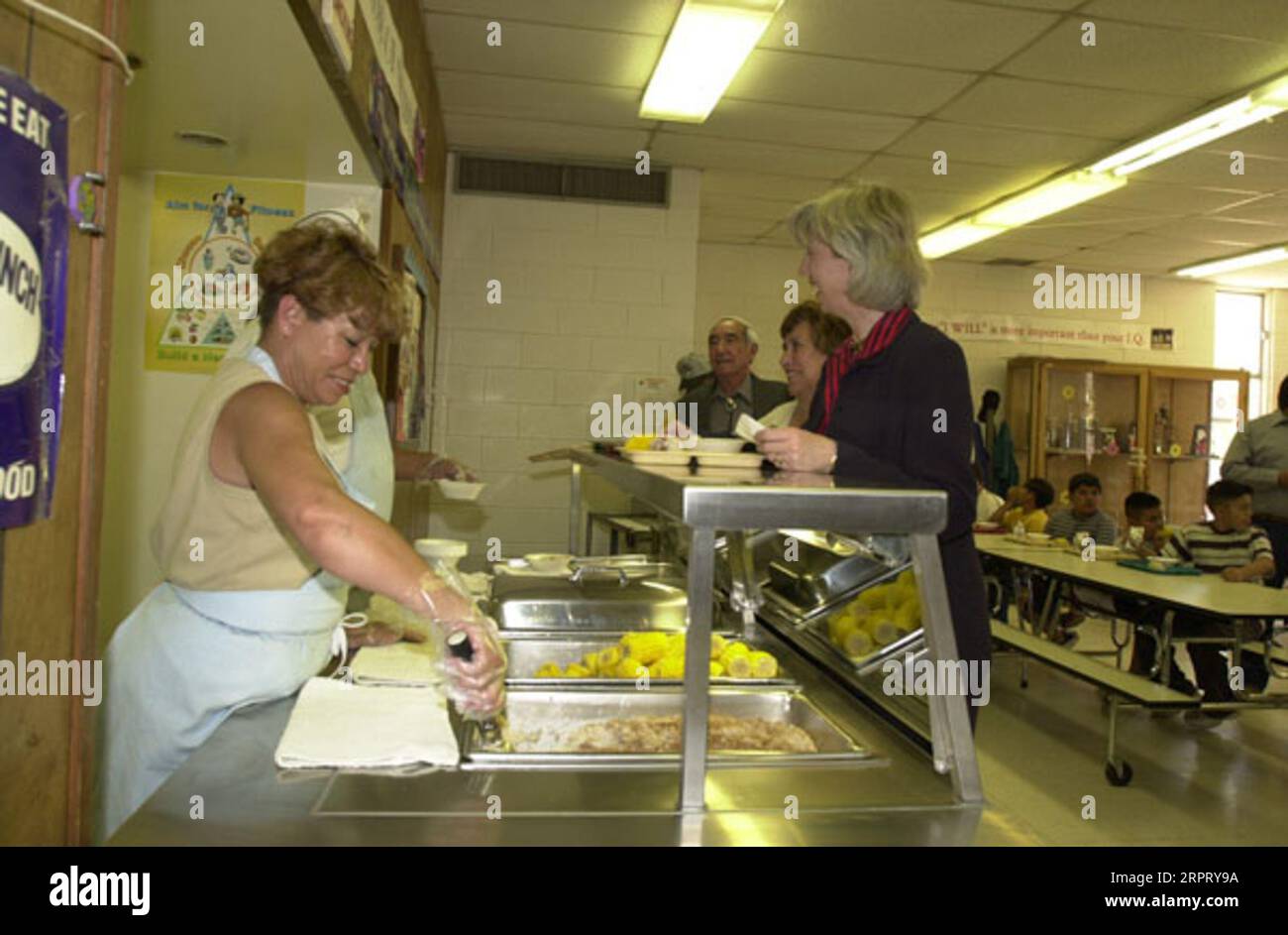 Secretary Gale Norton, right, conversing with cafeteria staff at the