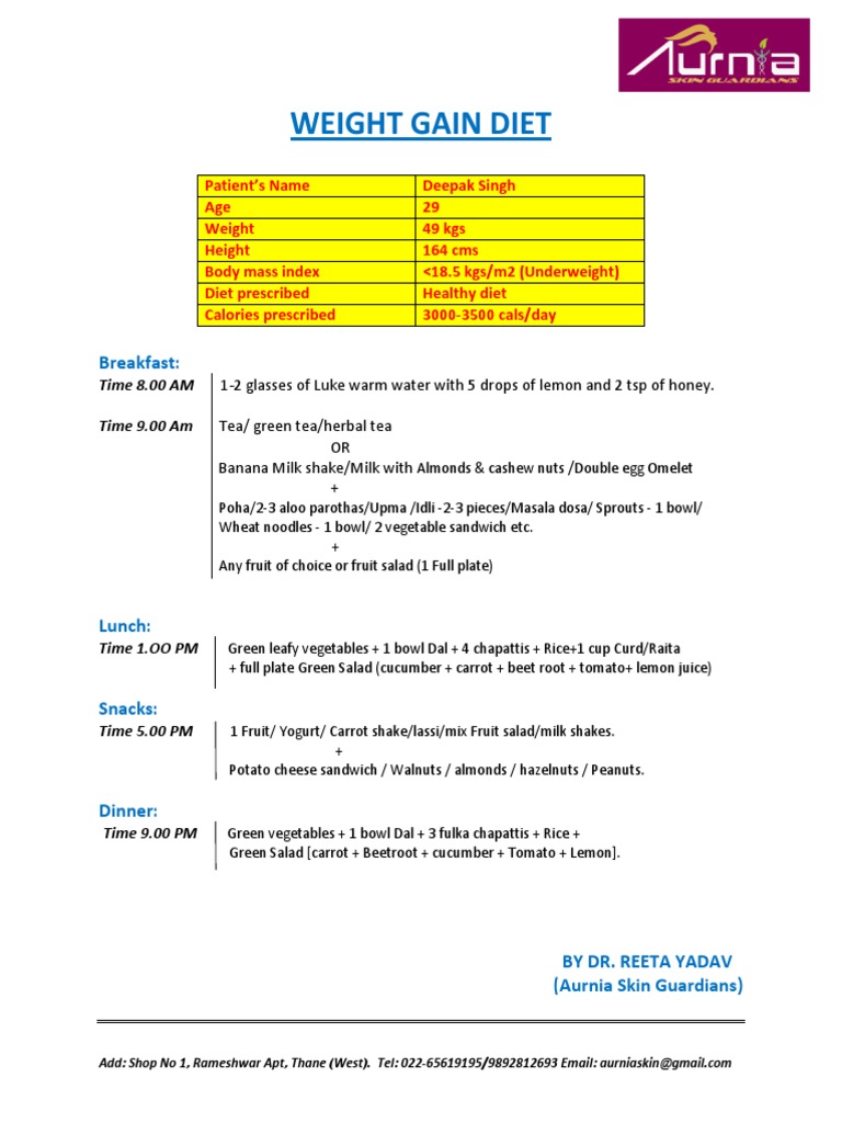 A Comprehensive Weight Gain Diet and Exercise Plan for Underweight