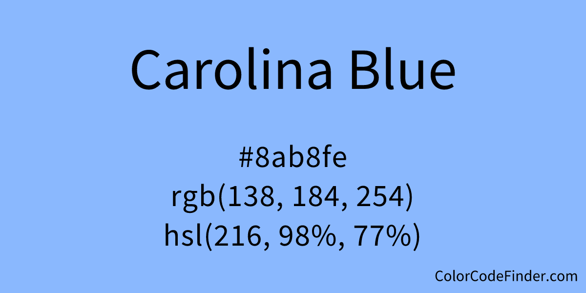 Carolina Blue Color Code is 8ab8fe What Colors Match With Carolina Blue Whether your decorating style is relaxed, modern, or old world, there's a blue color combination for you. Find what colors go with carolina blue color palettes. Includes color palettes, hex codes and color names: Includes color palettes, hex codes and color names. Here's our list of the best colors that match with the color blue. Here's our list of the. What Colors Match With Carolina Blue.