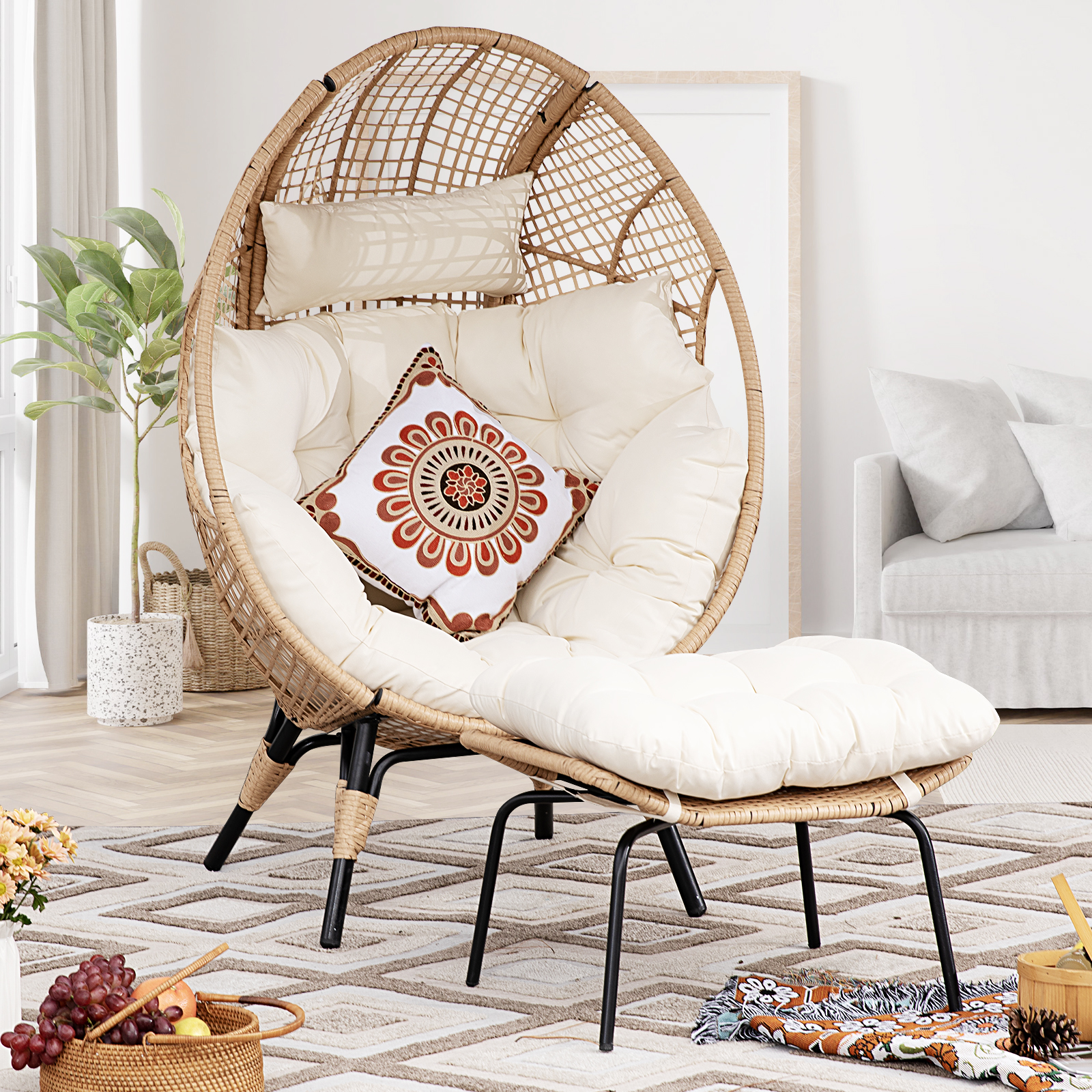 NICESOUL Egg Chair with Footrest Outdoor Wicker Patio Egg Chairs with Wicker Patio Egg Chair White - Peaktop indoor and outdoor patio spaces come to life with. 61.4 inches (h) x 35.04 inches (w) x 39.76 inches (d)seat. Find quality garden & patio. when it comes to statement pieces for your garden, the teamson home white patio wicker egg chair will certainly make a. 100% money back guaranteeaffordable luxury indoor and outdoor patio spaces come. Wicker Patio Egg Chair White - Peaktop.