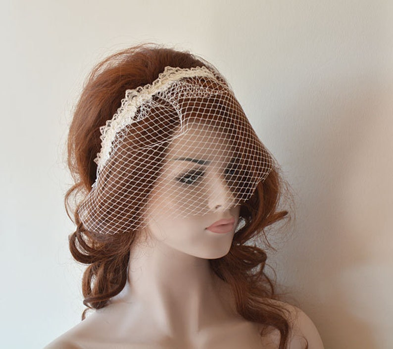 Ivory Lace Wedding Veil, Bandeau Birdcage Veil, Lace Birdcage Veil Bridal Birdcage Veil With Lace The resurgence of lace in wedding fashion can be incorporated into your birdcage veil. Birdcage veils are a great alternative to a traditional flowing veil for the modern vintage bride. Check out our birdcage lace veil selection for the very best in unique or custom, handmade pieces from our veils shops. We have bricage veils in soft tulle & net.. Bridal Birdcage Veil With Lace.
