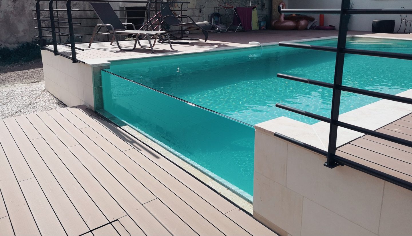 Piscine avec débordement en paroi de verre ANJOU PISCINES CONCEPT L