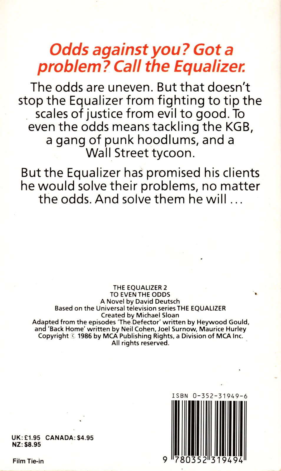 STARLOGGED GEEK MEDIA AGAIN 1987 THE EQUALIZER 2 TO EVEN THE ODDS