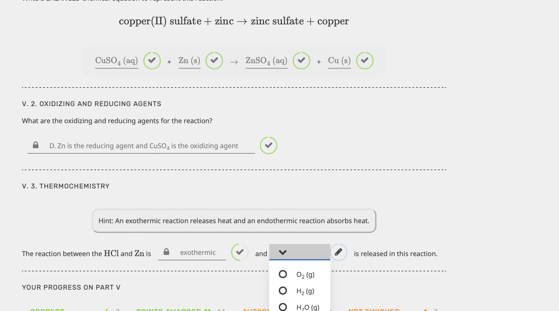 Solved copper(II) sulfate + zinc → zinc sulfate + copper