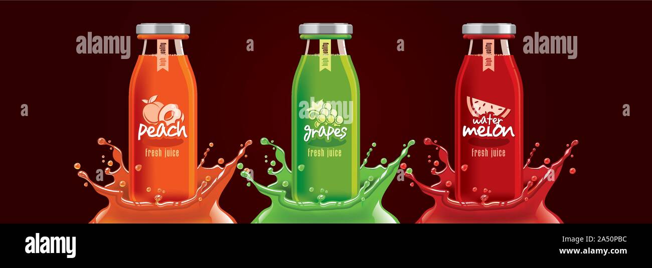 Fruit juice splash bottle set, sticker design Stock Vector Image & Art