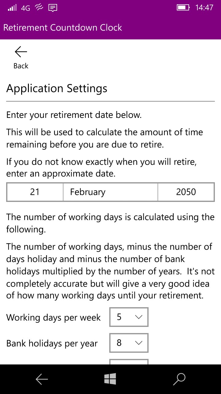 Retirement Countdown Clock for Windows 10