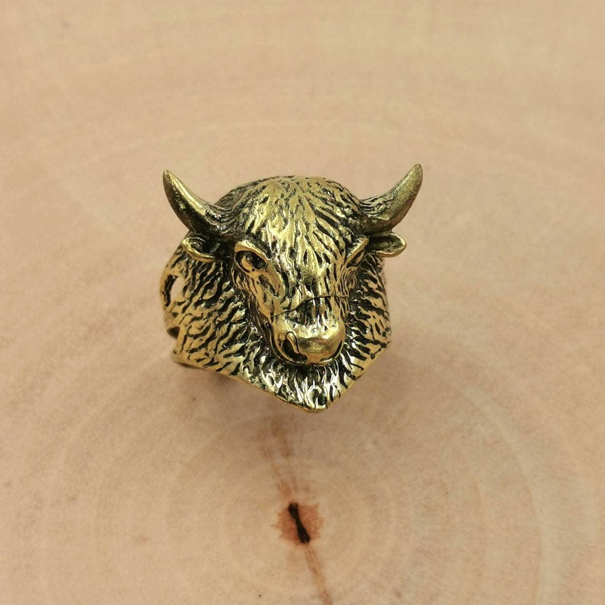 Buffalo Brass Ring Animal Head Ring Golden Men Ring Etsy