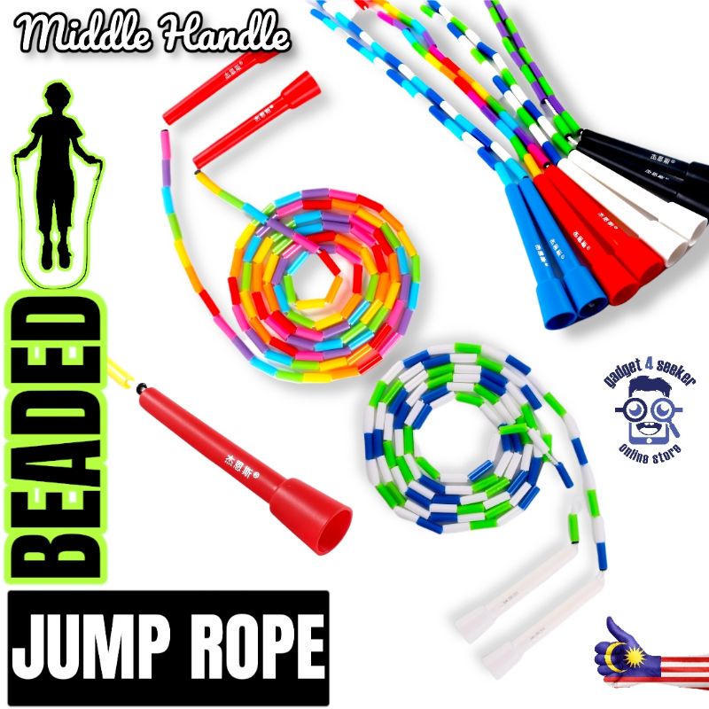 Buy Gamma Plastic Bead Jump Rope, Red/White/Blue Online at Low Prices Bead Jump Rope Elite jumps offers a big selection of beaded jump ropes in many colors, sizes, and styles. Beaded jump ropes boast a simple design that's great. Improve your coordination, rhythm, and cardiovascular fitness with our custom beaded rope. This jump rope helps increase the range of motion and improve cardio with continued use and is a favorite to trainers and clients. Bead Jump Rope.