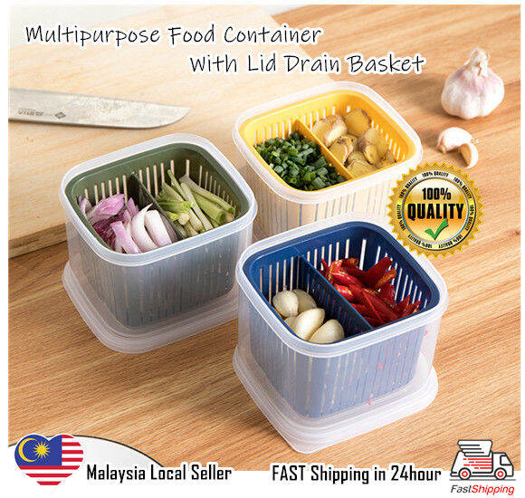 Kitchen Storage Food Container With Lid Drain Basket Food Colander