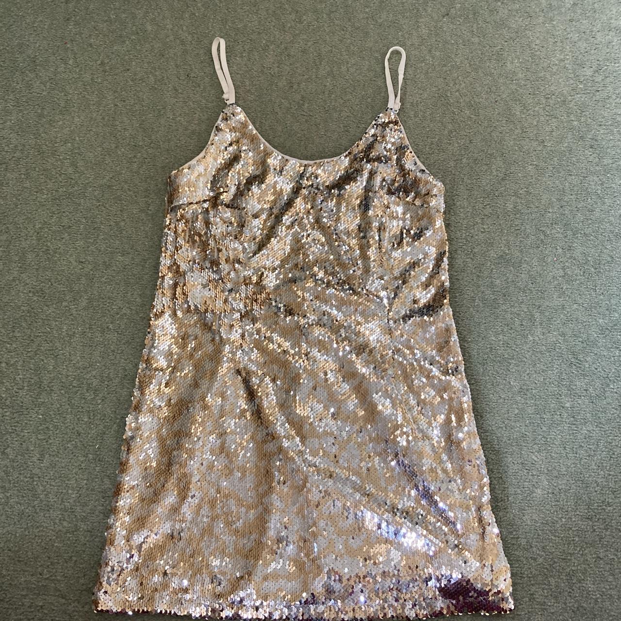 Boohoo Women's Silver and Gold Dress Depop