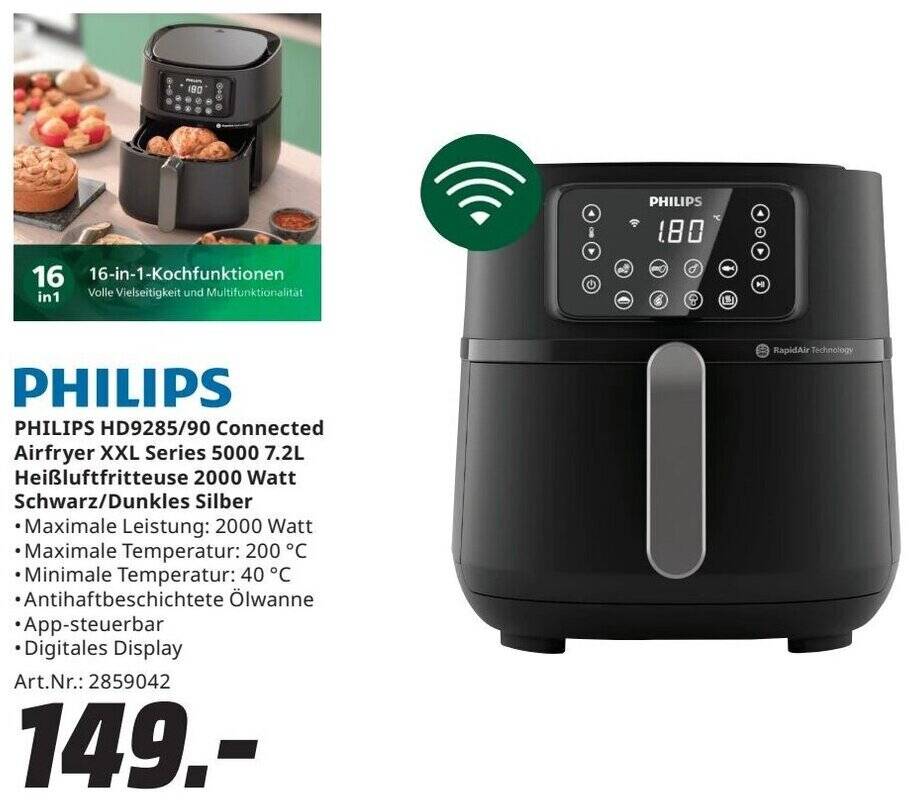 PHILIPS HD9285/90 Connected Airfryer XXL Series 5000 7.2L Air Fryer Xxl Media Markt Philips hd9285/93 airfryer 5000 xxl forrólevegős sütő 1 kiegészítővel, 2000 w, fekete; Iceagle dual zone heißluftfritteuse xxl airfryer 23l heißluftfriteuse 2200 watt schwarz im onlineshop von mediamarkt kaufen. Die heißluftfritteuse philips 5000 xxl ist eine große und gut ausgestattete fritteuse, die pommes, teigwaren und hauptgerichte. Entdecke den philips hd9870/20 airfryer xxl smart sensing 7.3l bei media markt für nur 186.56€.. Air Fryer Xxl Media Markt.