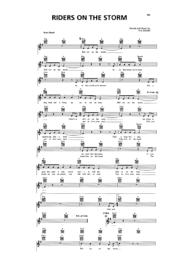 Riders On The Storm by The Doors Sheet Music for Guitar Chords/Lyrics Riders On The Storm Lyrics All lyrics are property and copyright of their respective authors, artists and labels. Learn about the song's production, meaning, and cover by snoop dogg. Read the lyrics and comments of the song riders on the storm by the doors, a classic rock song about the chaos and absurdity of life. Riders on the storm riders on the storm into this. Riders On The Storm Lyrics.