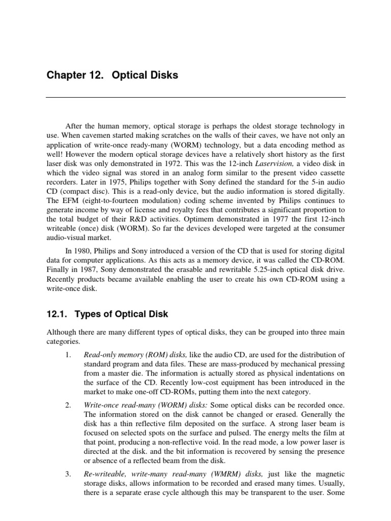 Chapter 12. Optical Disks 12.1. Types of Optical Disk PDF Cd Rom