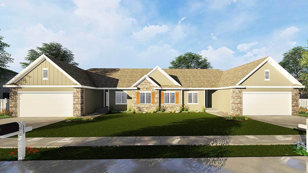 Attractive Ranch Duplex 62652DJ Architectural Designs House Plans