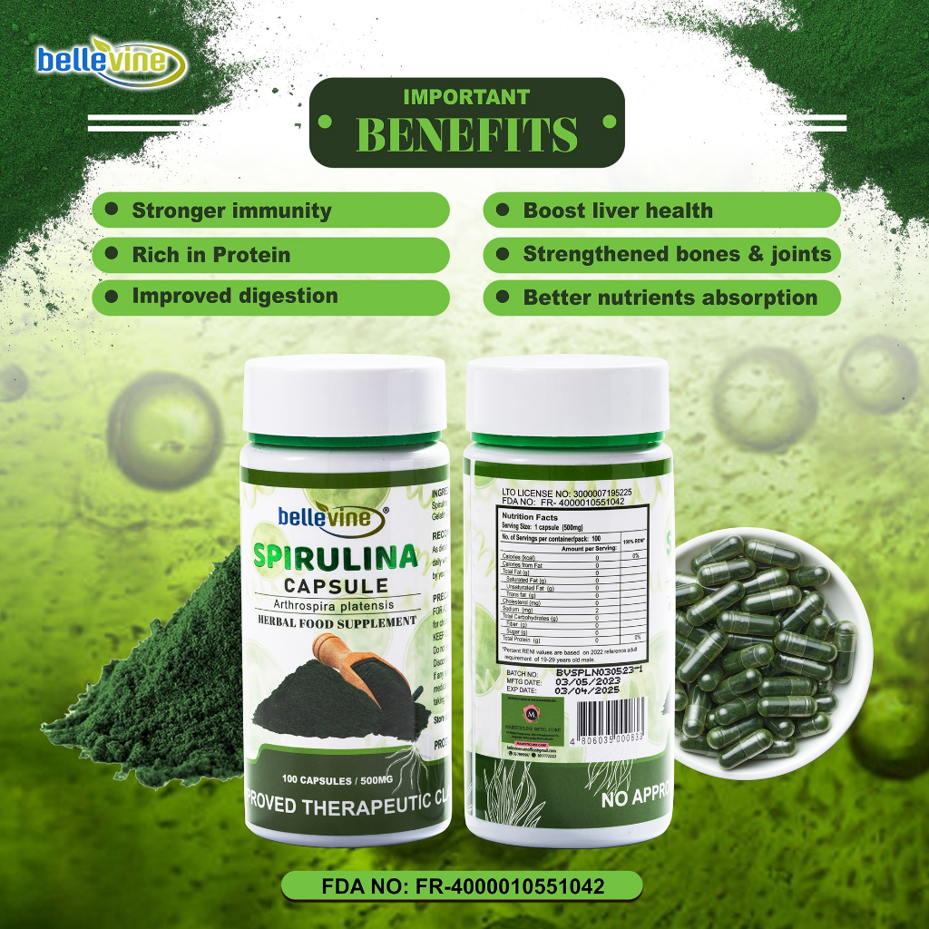 Spirulina Natural Herbs 100 Capsules/Bottle(Arthrospira Platensis) Shopee Philippines