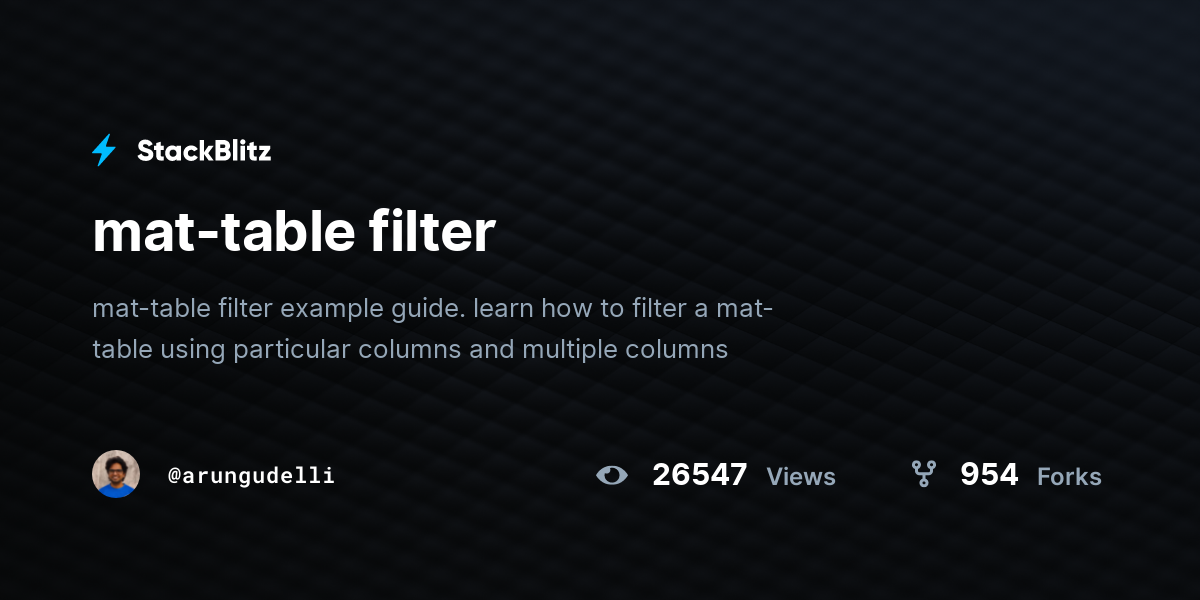 mattable filter StackBlitz