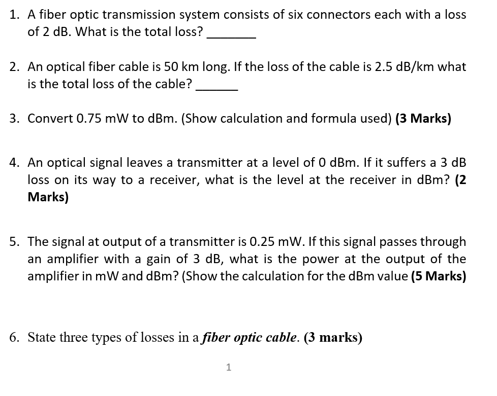 Solved 1. A fiber optic transmission system consists of six