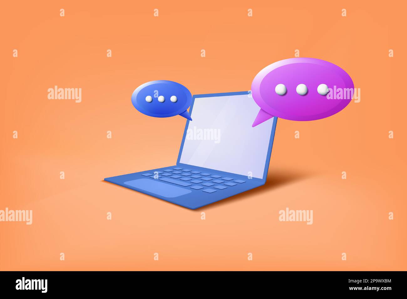 3D laptop icon. Speech bubble in notebook. Discussion screen render