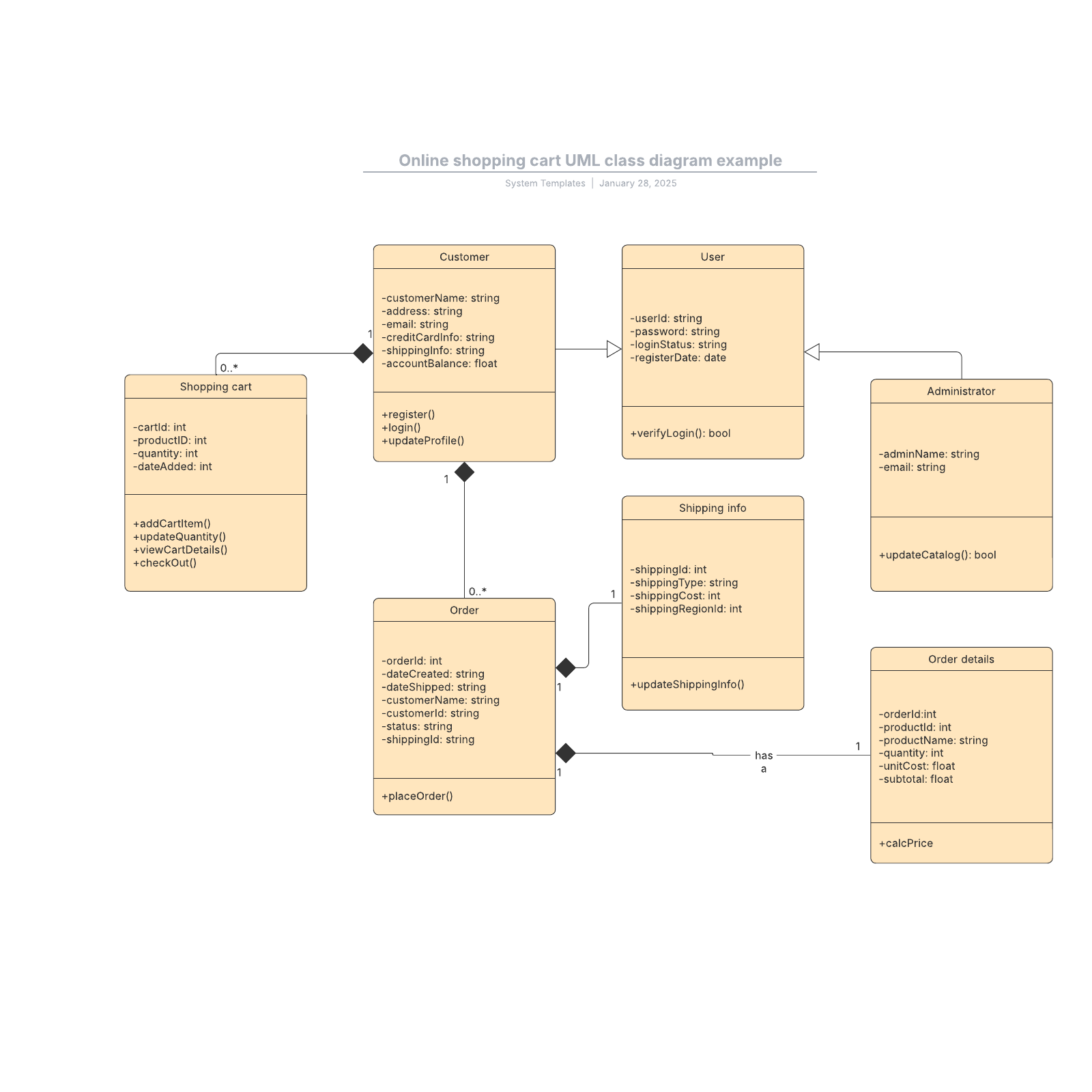 Online shopping cart UML class diagram example Lucidchart