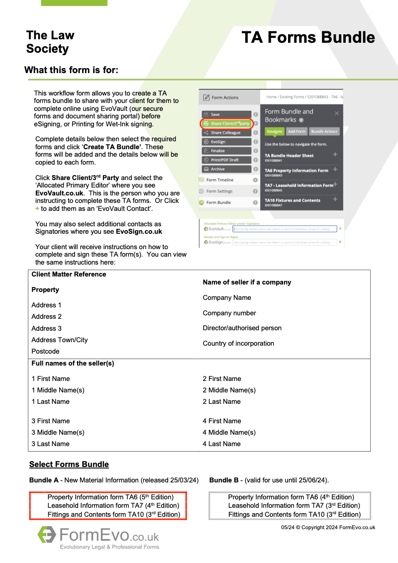TA Forms Bundle Predefined bundle containing TA6, TA7 and TA10