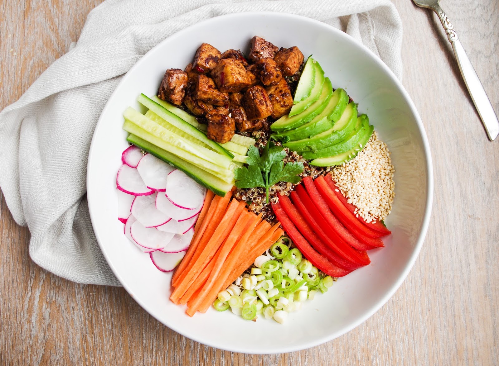 Buddha Bowl Eating Bird Food Buddha Bowl Tofu Quinoa Serve with a homemade peanut sauce. this colorful vegan power bowl, known as a nourishing or buddha bowl, usually includes grain as a base, veggies and greens, protein, and healthy fat. Firm, flavorful tofu baked to perfection on a bed of quinoa with a mix of fresh and cooked veggies. It's perfect for a quick weeknight dinner or as. Buddha Bowl Tofu Quinoa.