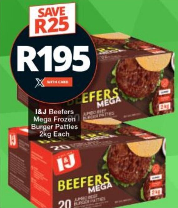 I&J Beefers Mega Frozen Burger Patties 2kg Each offer at Checkers