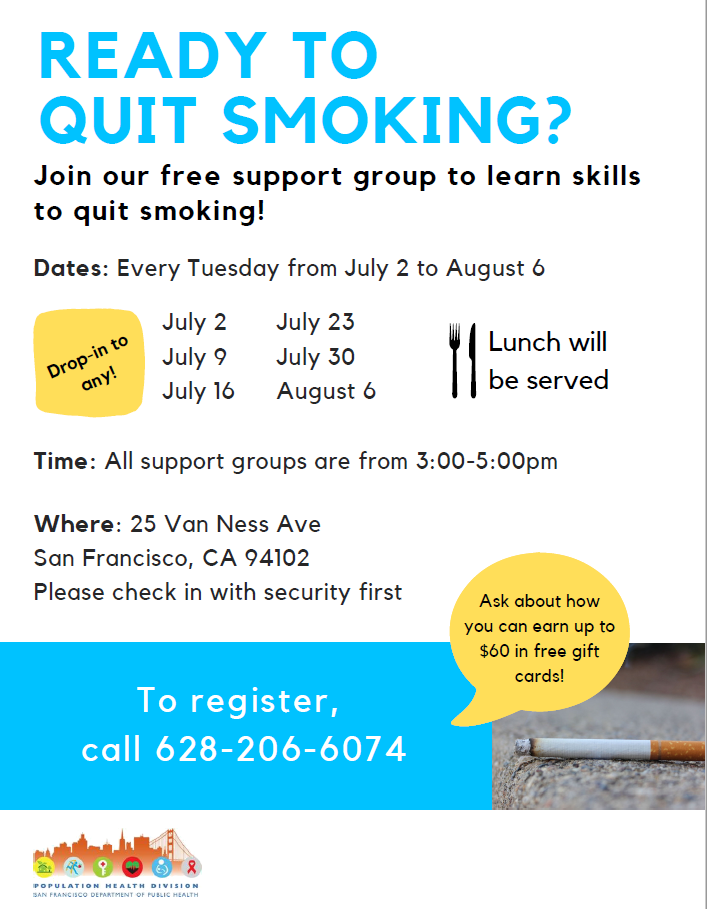 July 2 to August 6 Quit Smoking Group San Francisco TobaccoFree