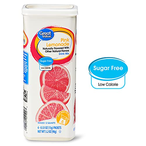 Great Value Pink Lemonade Drink Mix, 3.2 Oz 6 Packets (Pack of 2