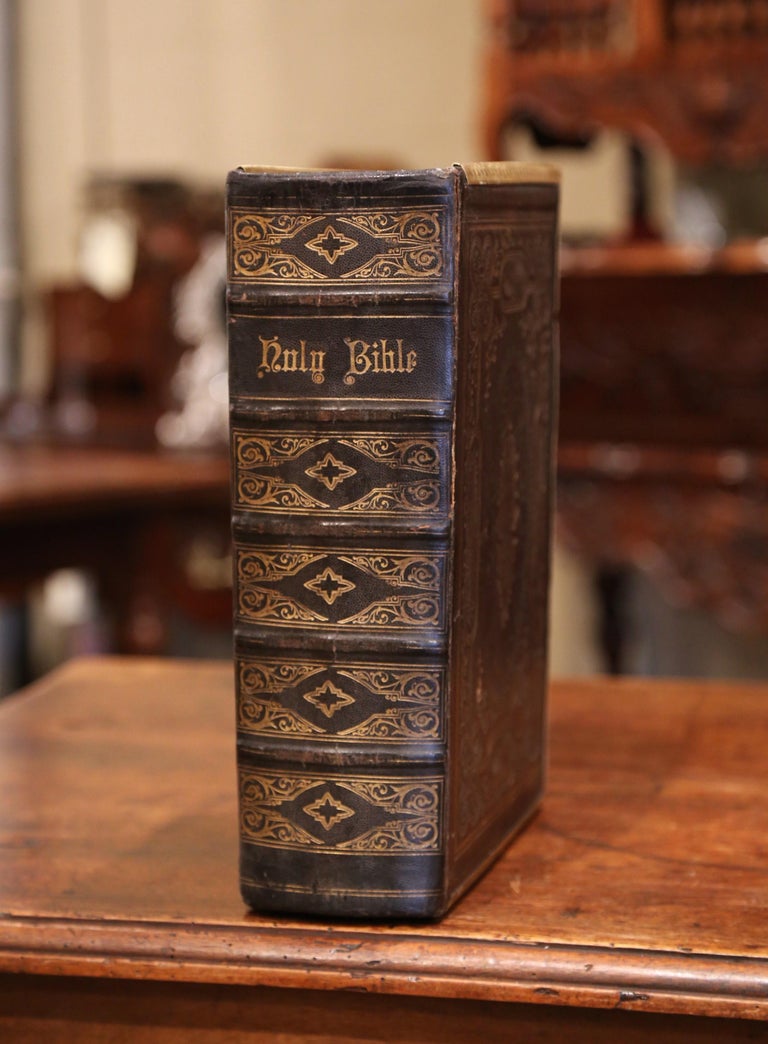 19th Century English Leather Bound Holy Bible with Gilt Tooling and