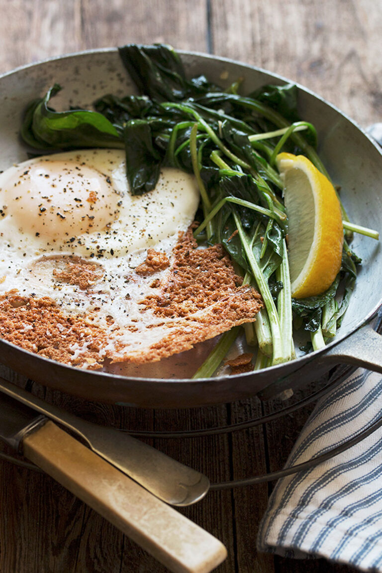 Crispy Parmesan Fried Egg with Spinach Seasons and Suppers