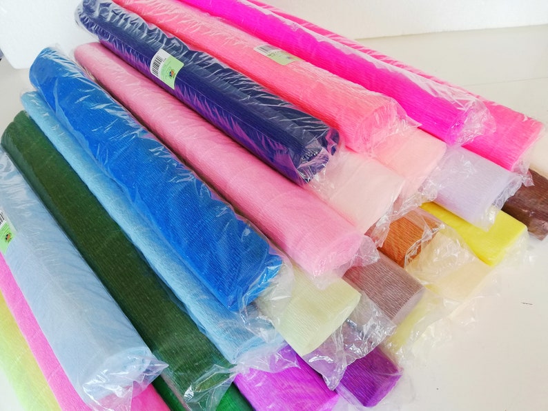 5 Crepe Paper Rolls any colors Crepe Paper for large paper Etsy Large Crepe Paper Rolls Crepe paper roll #20e3, italian 180g italian sky. Premium heavy weight (180 gram) crepe paper. Our premium crepe papers feature exceptional weight, texture and stretchability. Our italian crepe paper is perfectly suited for creating realistic paper. 50cm x 250cm (approx 19.5 inches x 98.5. Available in over 80 beautiful colors and styles. Carte fini offers the finest quality italian crepe. Large Crepe Paper Rolls.