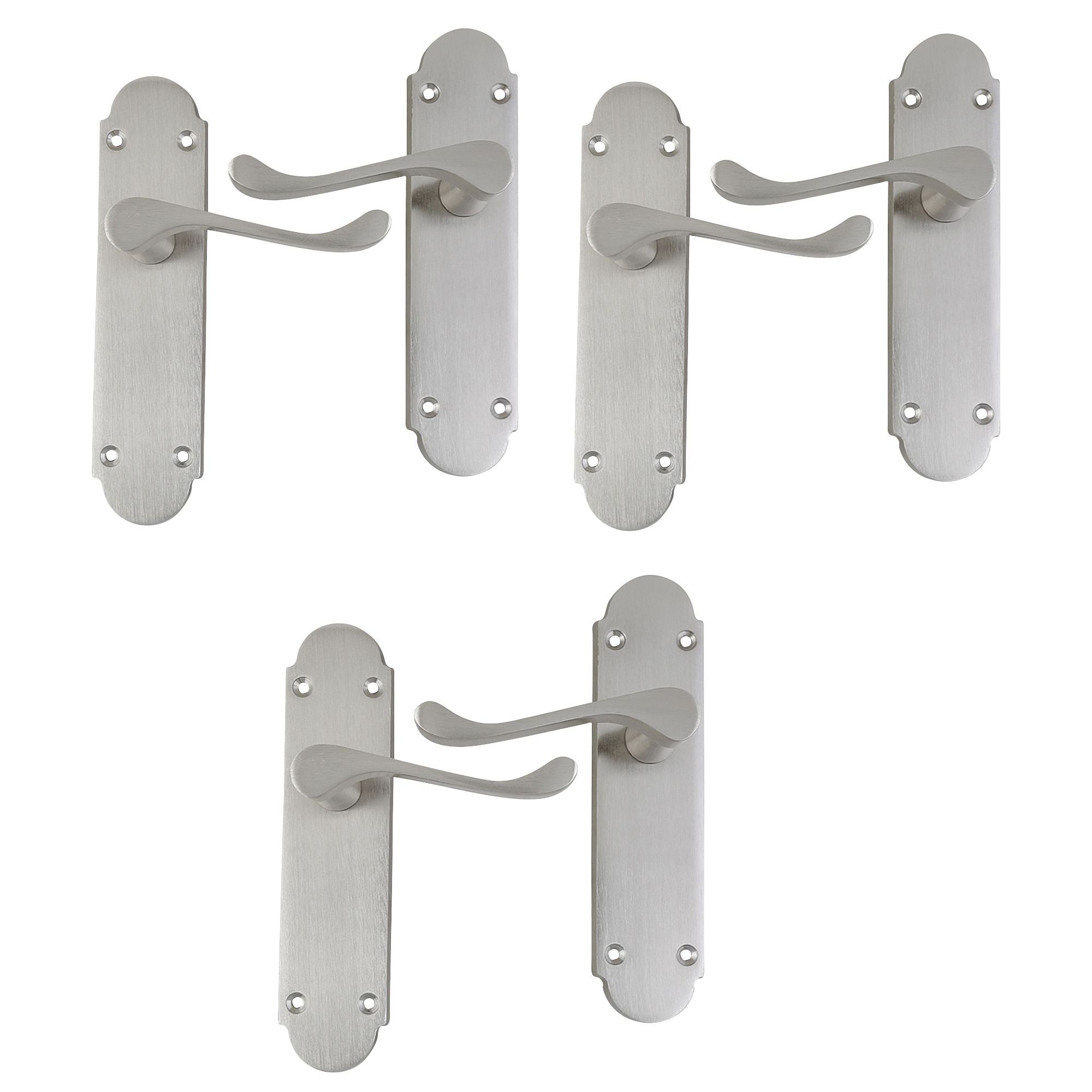 Satin Nickel effect Internal Scroll Latch Door handle, Set of 3