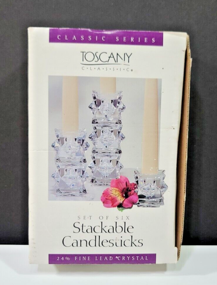 TOSCANY Classic Set/6 Stackable Candle Holders 24 Fine Lead St. Toscany Lead Crystal Candle Holders 24% lead crystal candlestick holders for taper candles or votives. 24% lead crystal candlestick holders for taper candles or votives. Toscany pattern candle holders with over 24% lead crystal content. Holders will accommodate tapered candles with a 1 inch. Buy toscany 24% lead crystal candlesticks (pair): 24% lead crystal candlestick holders for taper candles or votives. Toscany pattern candle holders. Toscany Lead Crystal Candle Holders.