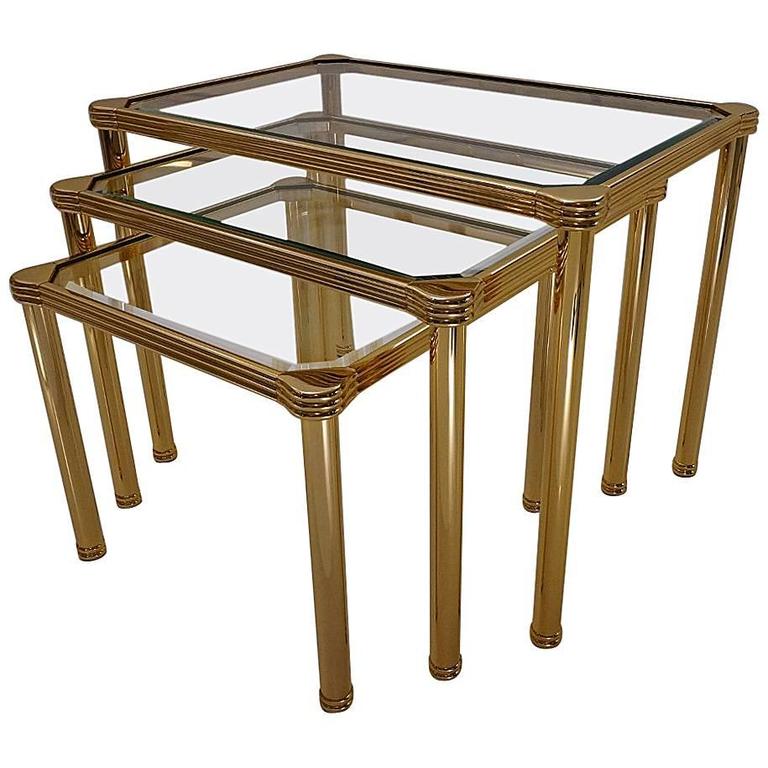 Orsenigo Nesting Tables, Gold Gilt and Bevelled Glass, circa 1980s, Italian at 1stDibs Gold And Glass Nesting Tables This nesting table features a gleaming gold base and glass surfaces for glam style in your living room. Shop online for gold nesting side tables and end tables. Each table is built on an open metal. Anchor your living room in a clean and transitional style with this andover 2pc pack nesting table. Enjoy free shipping on most stuff, even. Gold And Glass Nesting Tables.