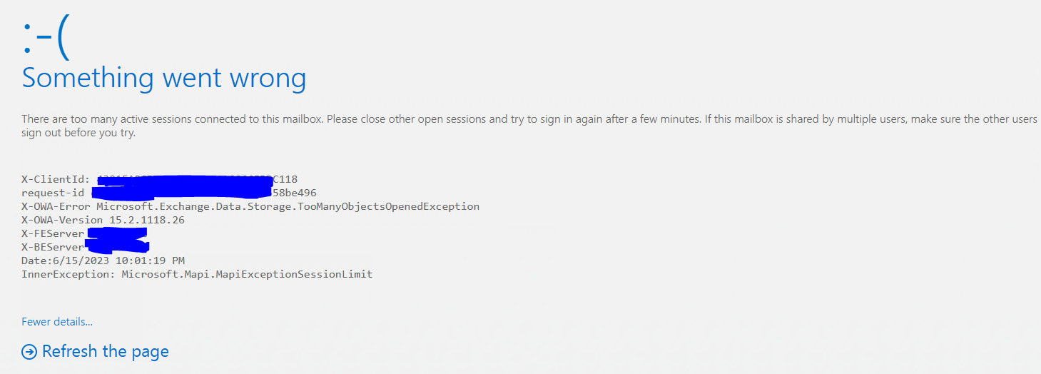 Something went wrong. There are too many active sessions connected to