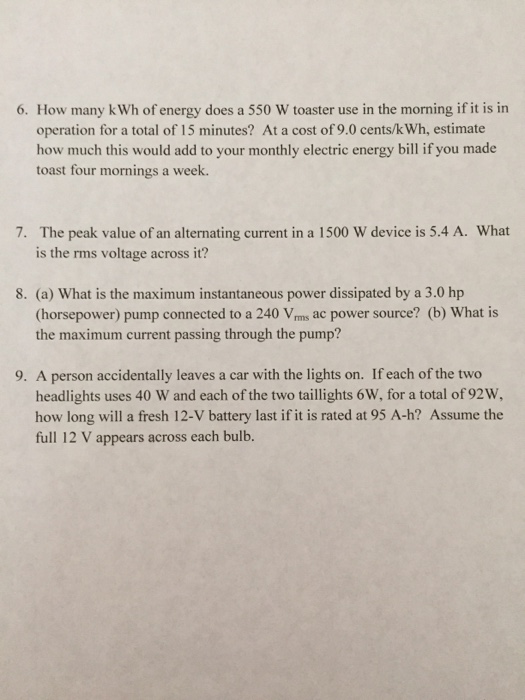 Solved How many kWh of energy does a 550 W toaster use in