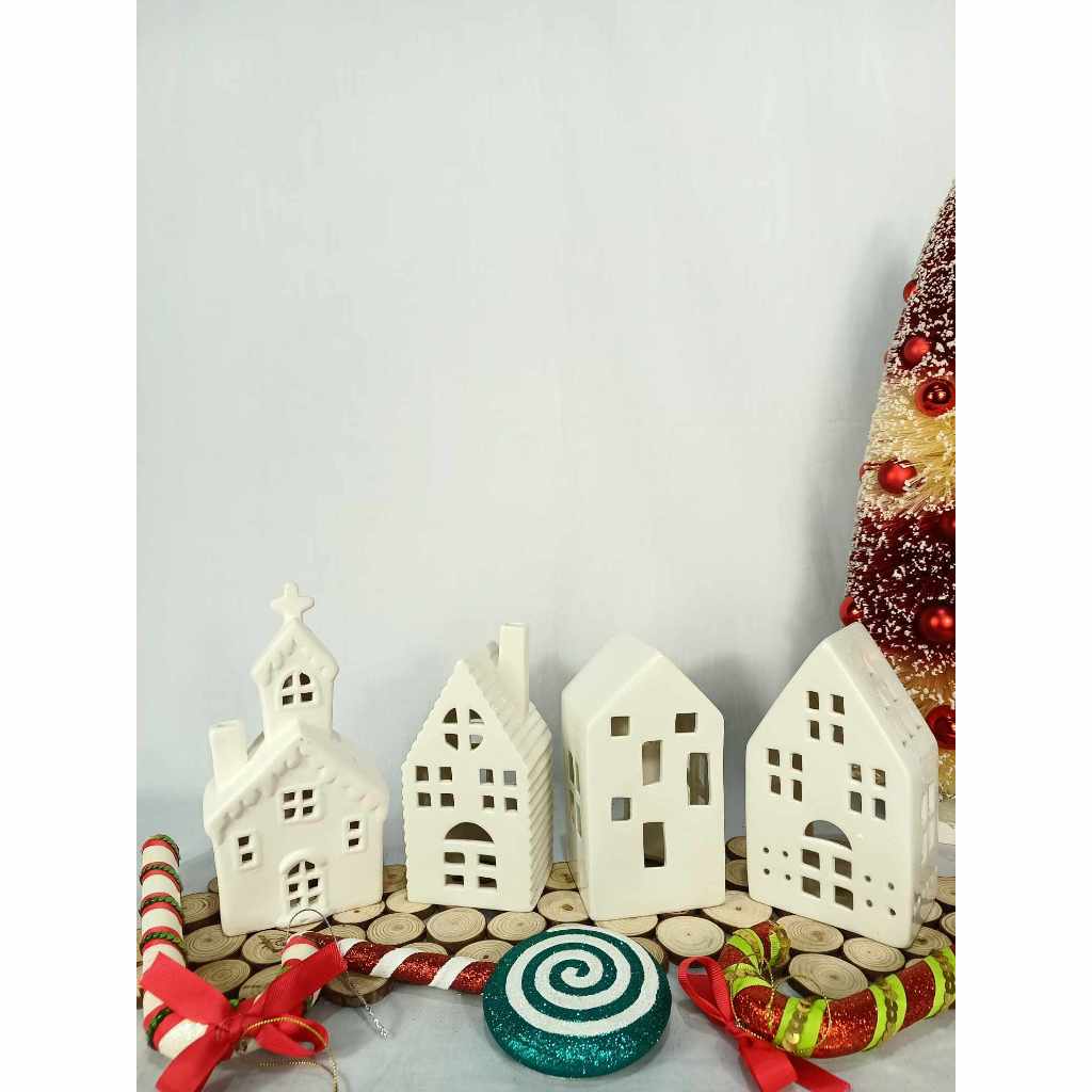 Decorative White Christmas Villages Display Home Decor, Collection