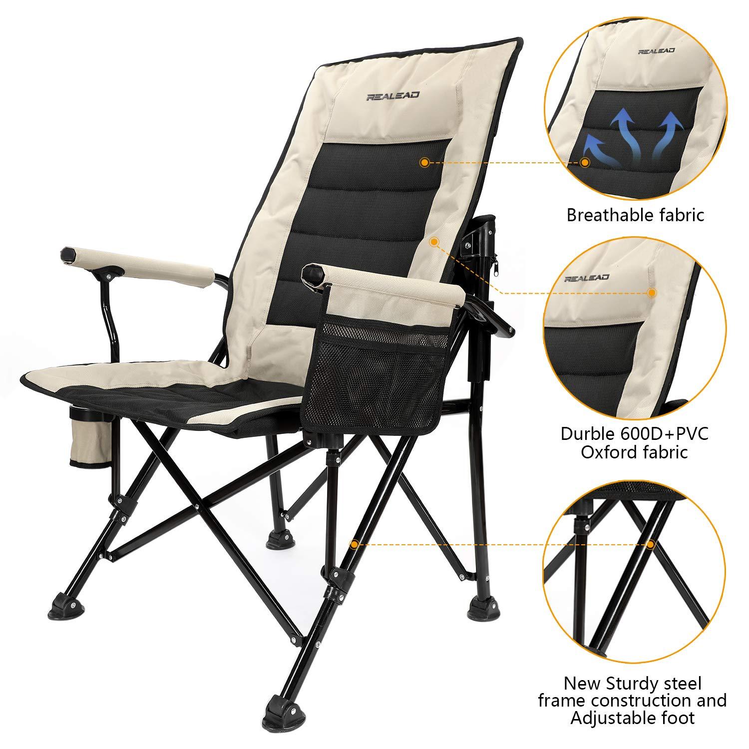 Realead Oversized Camping Chairs Heavy Duty Folding chair Padded Support 400 LBS