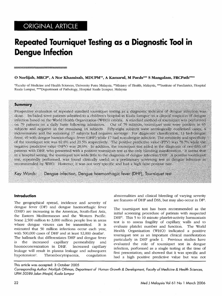 Tourniquet Testing Sensitivity And Specificity Infection